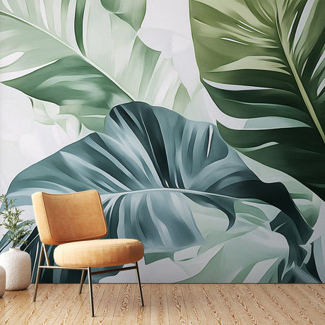 Papier Peint Mural Botanique | Art Pastel de Feuilles de Monstera