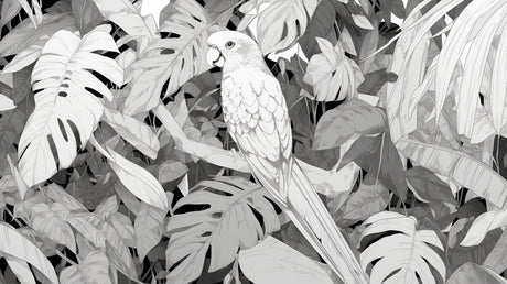 De £28.90£33.90Prix unitaire /IndisponiblePapier Peint Mural Oiseaux Tropicaux | Perroquet Monochrome avec Feuilles de Monstera