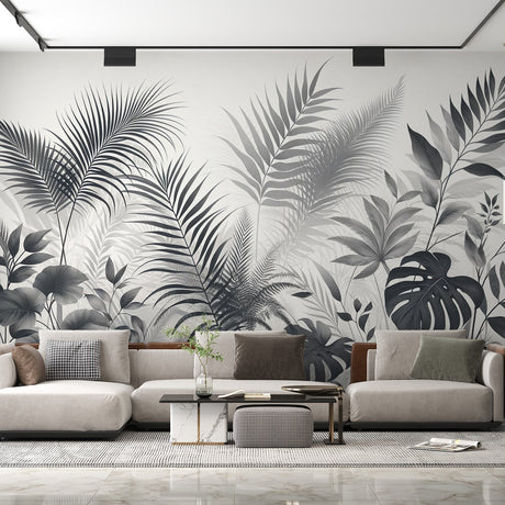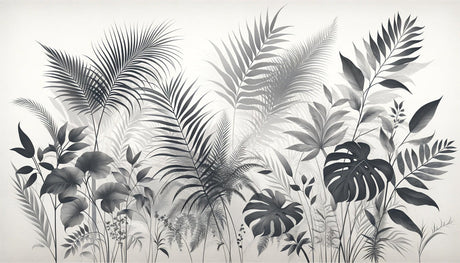 Papier Peint Mural Tropical | Paradis de la Jungle Noir et Blanc