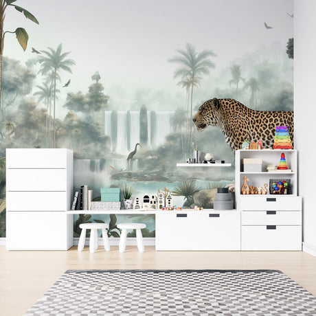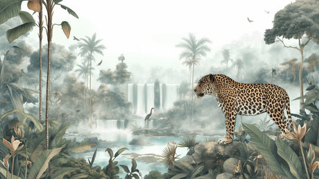 De £28.90£33.90Prix unitaire /IndisponiblePapier Peint Mural Jungle | Cascade Brumeuse Avec Léopard