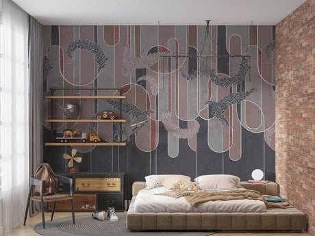 De £28.90£33.90Prix unitaire /IndisponiblePapier Peint Mural Abstrait | Design Géométrique de Plumes avec Rayures Bourgogne