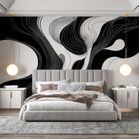 De £28.90£33.90Prix unitaire /IndisponiblePapier Peint Mural Abstrait | Lignes Fluides Noir et Blanc