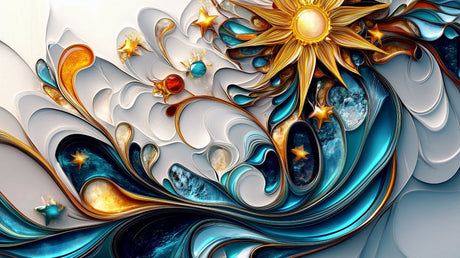 De £28.90£33.90Prix unitaire /IndisponiblePapier Peint Mural Abstrait | Design Céleste 3D avec Or et Turquoise