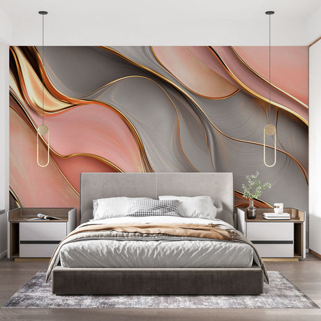 De £28.90£33.90Prix unitaire /IndisponiblePapier Peint Mural Abstrait | Art Fluide Rose et Or