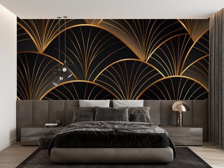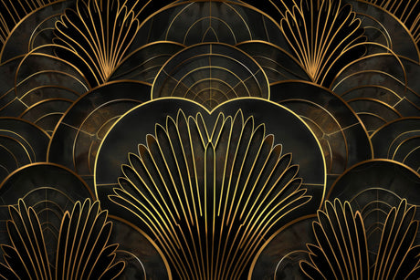 De £28.90£33.90Prix unitaire /IndisponiblePapier Peint Mural Art Déco | Motif Éventail Doré sur Fond Noir