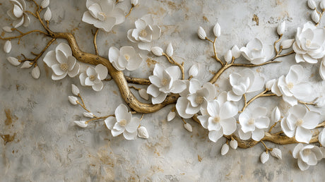 De £28.90£33.90Prix unitaire /IndisponiblePapier Peint Mural Magnolia | Fleurs Blanches 3D avec Branches Dorées