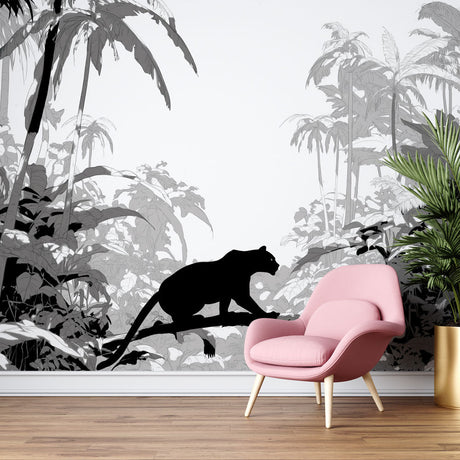 De £28.90£33.90Prix unitaire /IndisponiblePapier Peint Mural Jaguar | Faune Exotique dans des Feuilles Monochromes