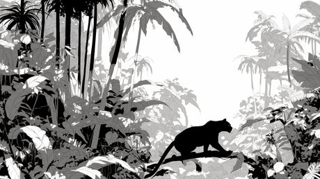 De £28.90£33.90Prix unitaire /IndisponiblePapier Peint Mural Jungle | Silhouette de Panthère Noire dans la Forêt Tropicale