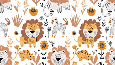 De £28.90£33.90Prix unitaire /IndisponiblePapier Peint Mural Lion Safari | Design Floral Nordique