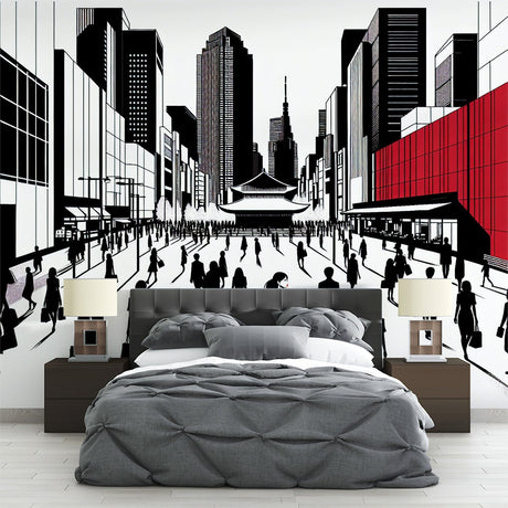 De £28.90£33.90Prix unitaire /IndisponiblePapier Peint Mural Japonais Urbain | Vie Urbaine Moderne avec Accent Rouge
