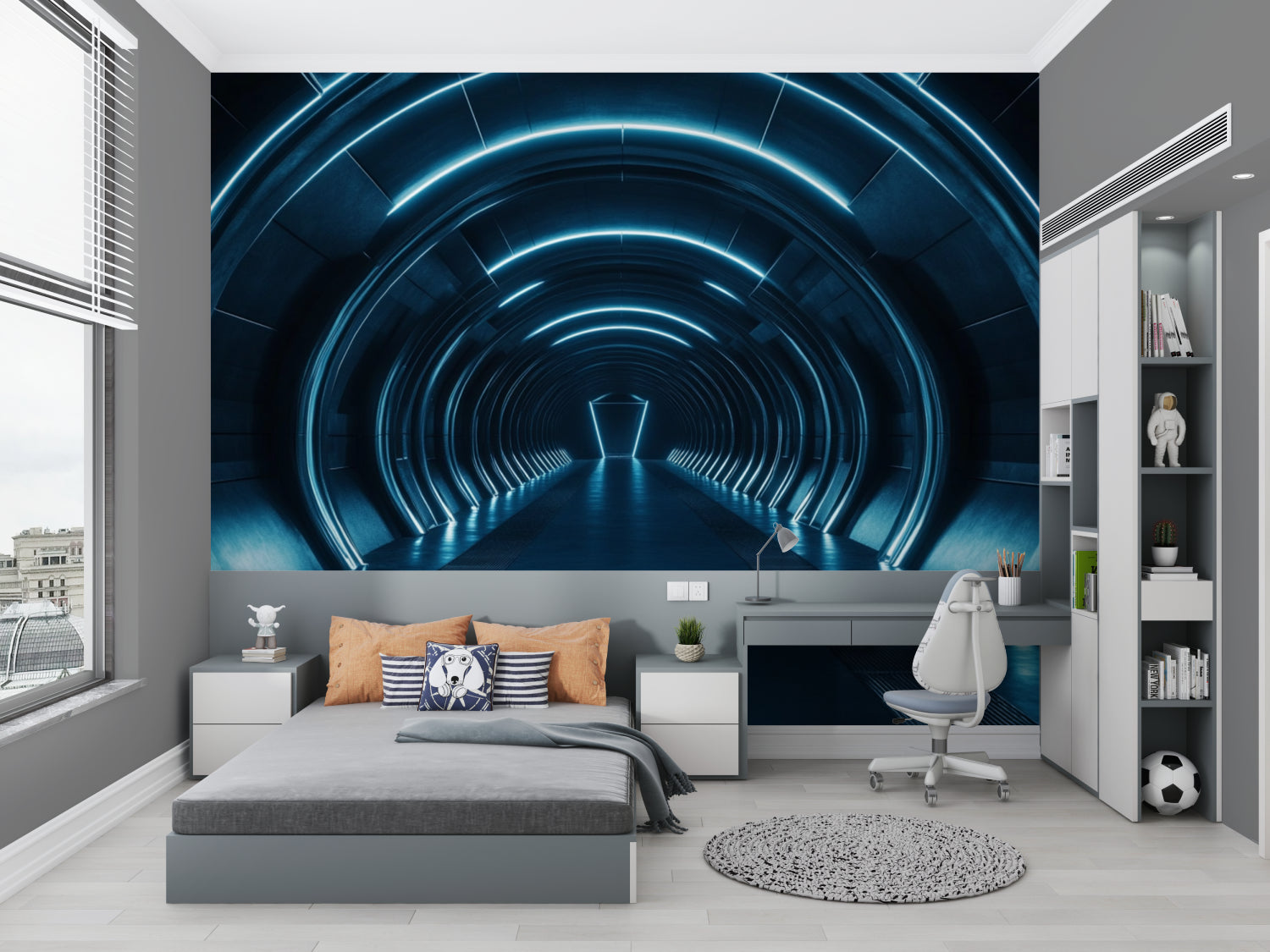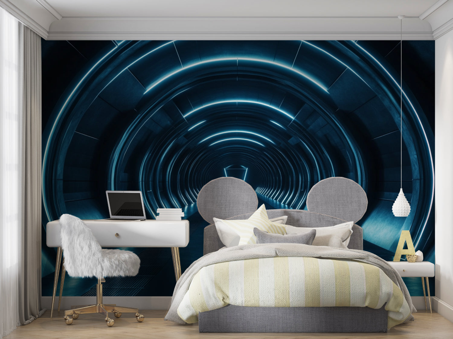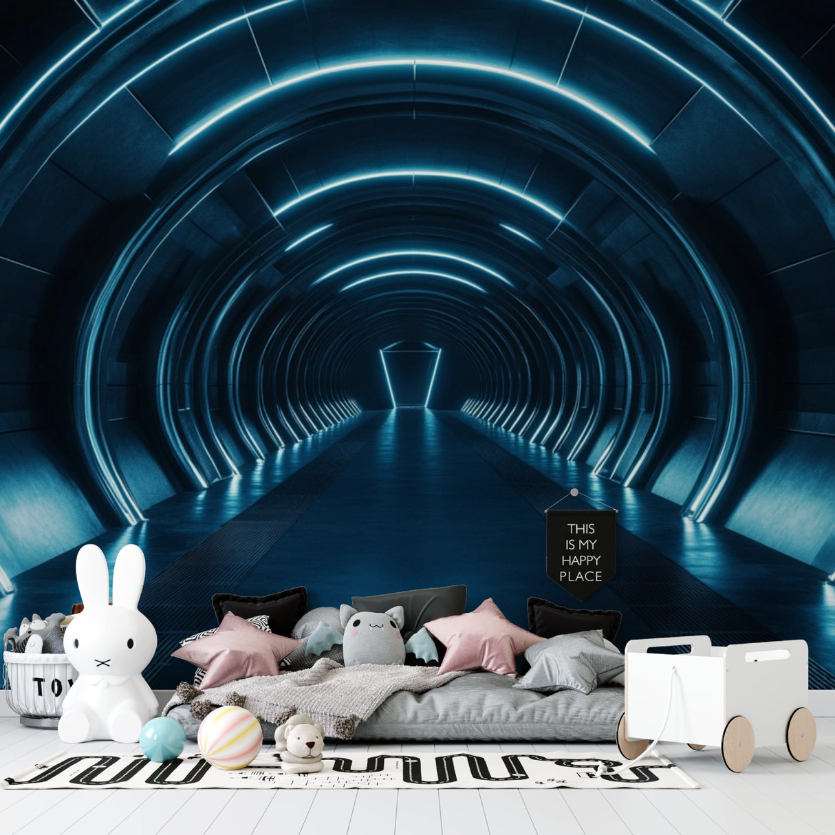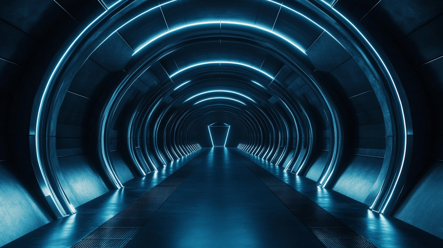 Papier Peint Mural Tunnel 3D | Design Lumière Bleue Futuriste