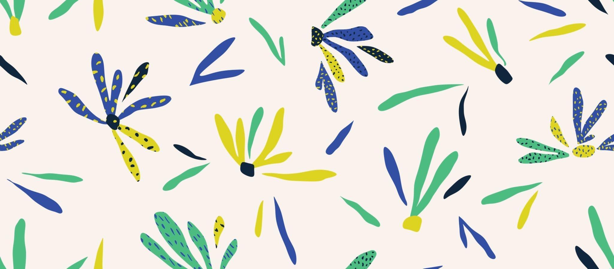 Papier Peint Mural Floral Abstrait | Motif Moderne de Marguerites Bleues et Jaunes
