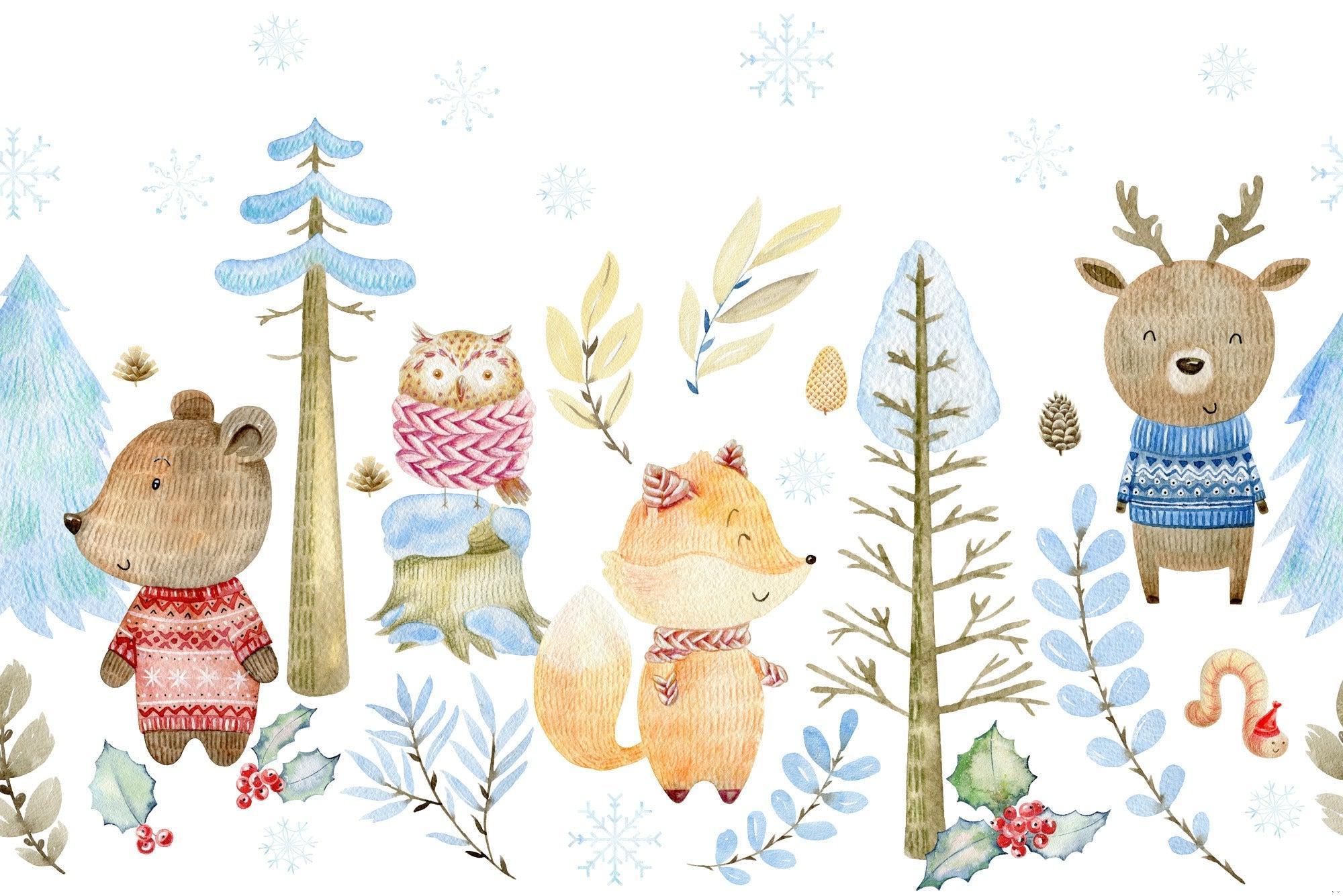Papier Peint Mural Animaux de la Forêt | Forêt d'Hiver avec Pulls Confortables