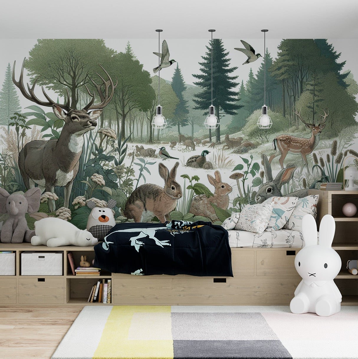 Notre papier peint cerfs et lapins crée une ambiance chaleureuse dans n'importe quelle pièce.
