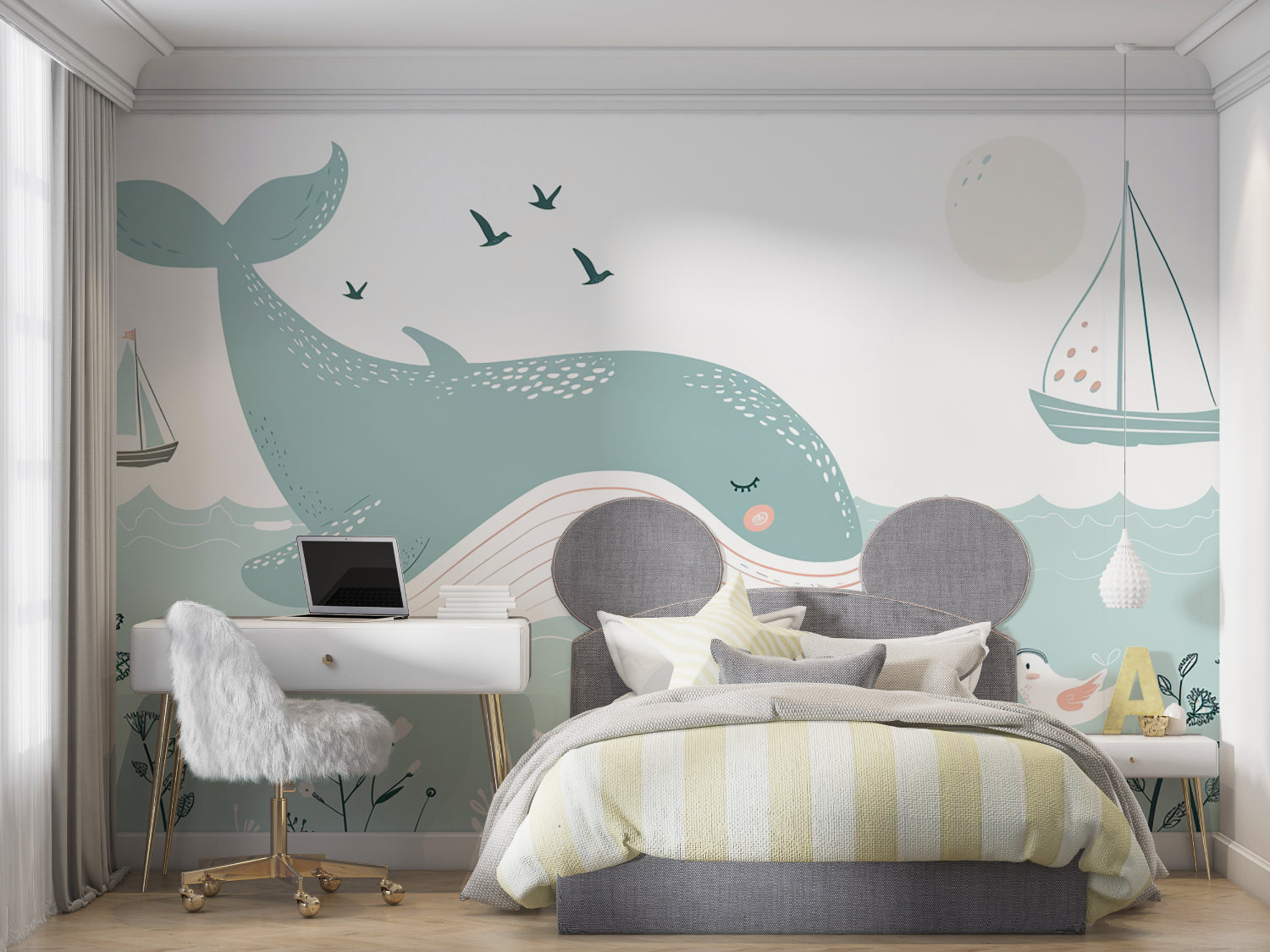 Papier Peint Mural Animaux Marins | Design Doux de Baleine et d'Oiseaux de Mer