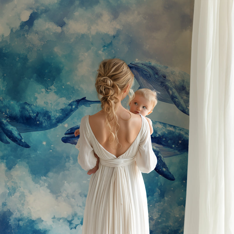 Papier Peint Mural Animaux Marins | Mystiques Baleines Bleues dans le Ciel