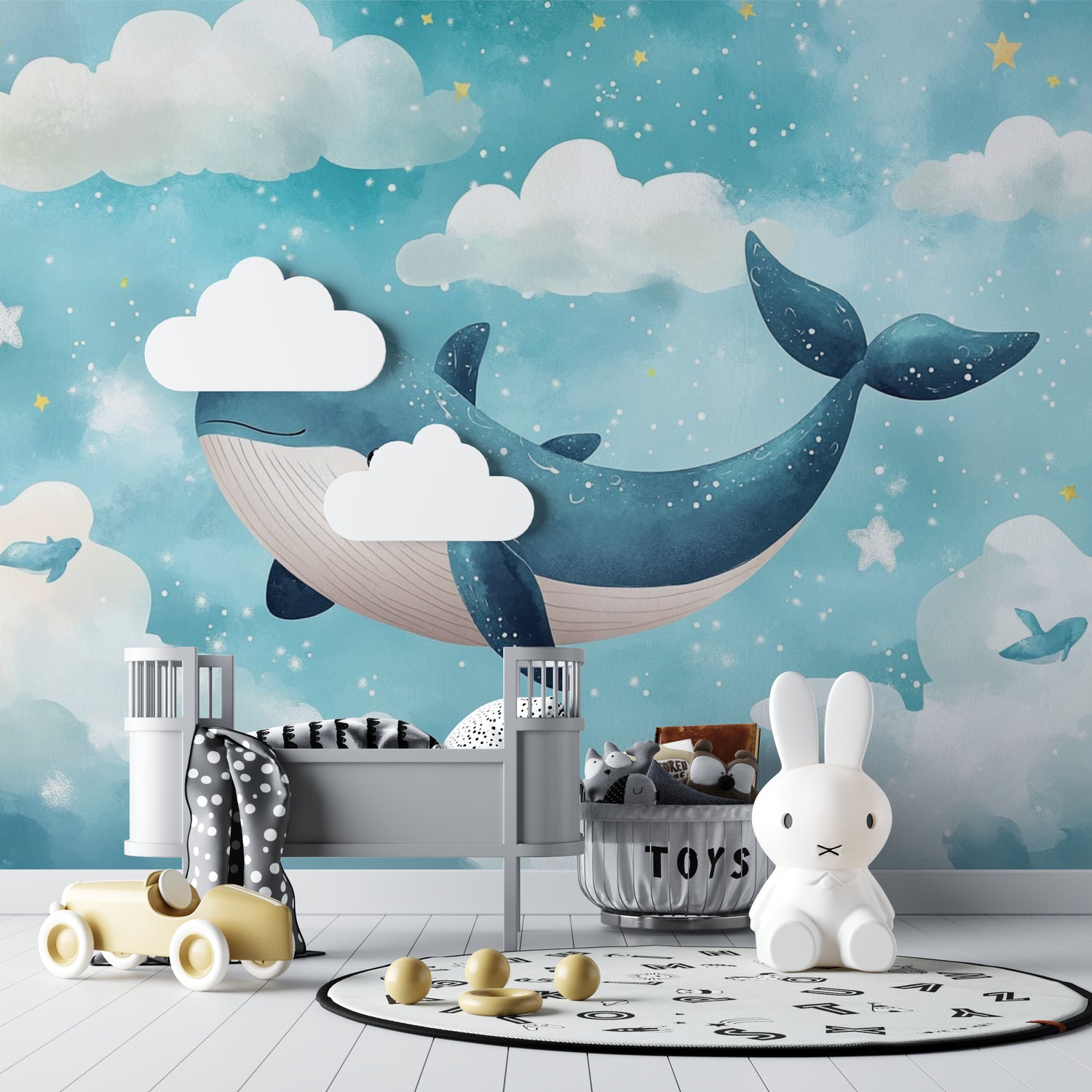 Ce papier peint baleine pour enfants rend chaque bonne nuit spéciale.