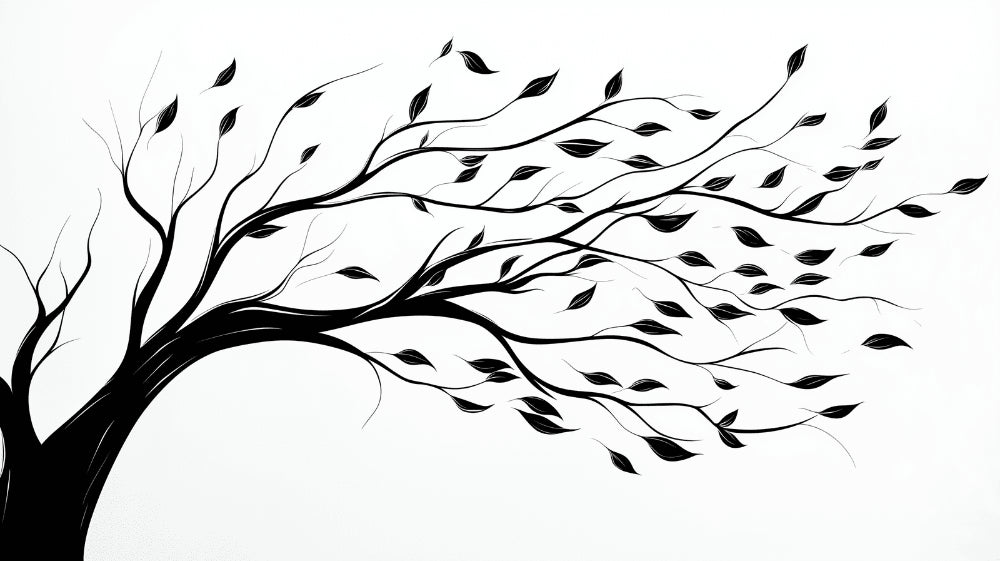 Papier Peint Mural Arbre | Design Noir et Blanc Soufflé par le Vent