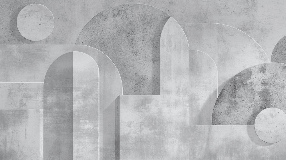Ce papier peint géométrique présente une composition sophistiquée d'arcs architecturaux et de formes circulaires rendues dans des nuances raffinées de gris. La finition texturée semblable au béton crée un jeu saisissant de lumière et d'ombre, tandis que les lignes épurées et les formes art déco qui se chevauchent établissent un sens de profondeur et de dimension. La palette de couleurs minimaliste met en valeur la géométrie élégante, créant une interprétation moderne des éléments architecturaux classiques.