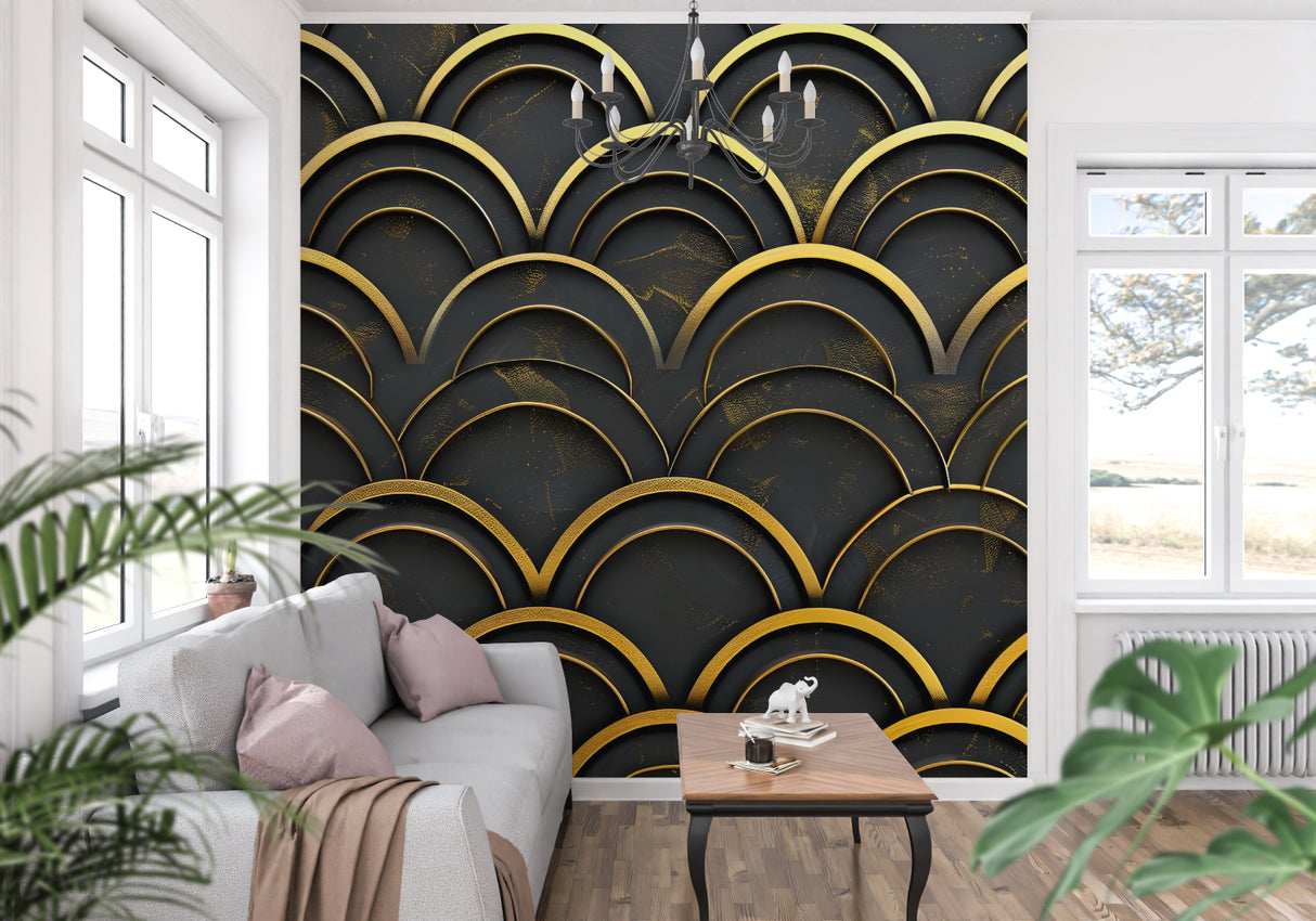 Papier Peint Mural Art Déco | Arches Géométriques Noires et Dorées