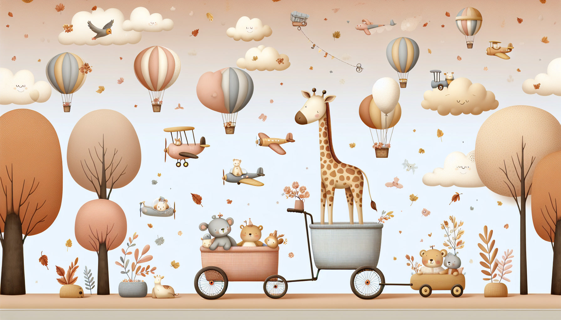 Parfait papier peint mural pour chambre de bébé avec des tons neutres apaisants.