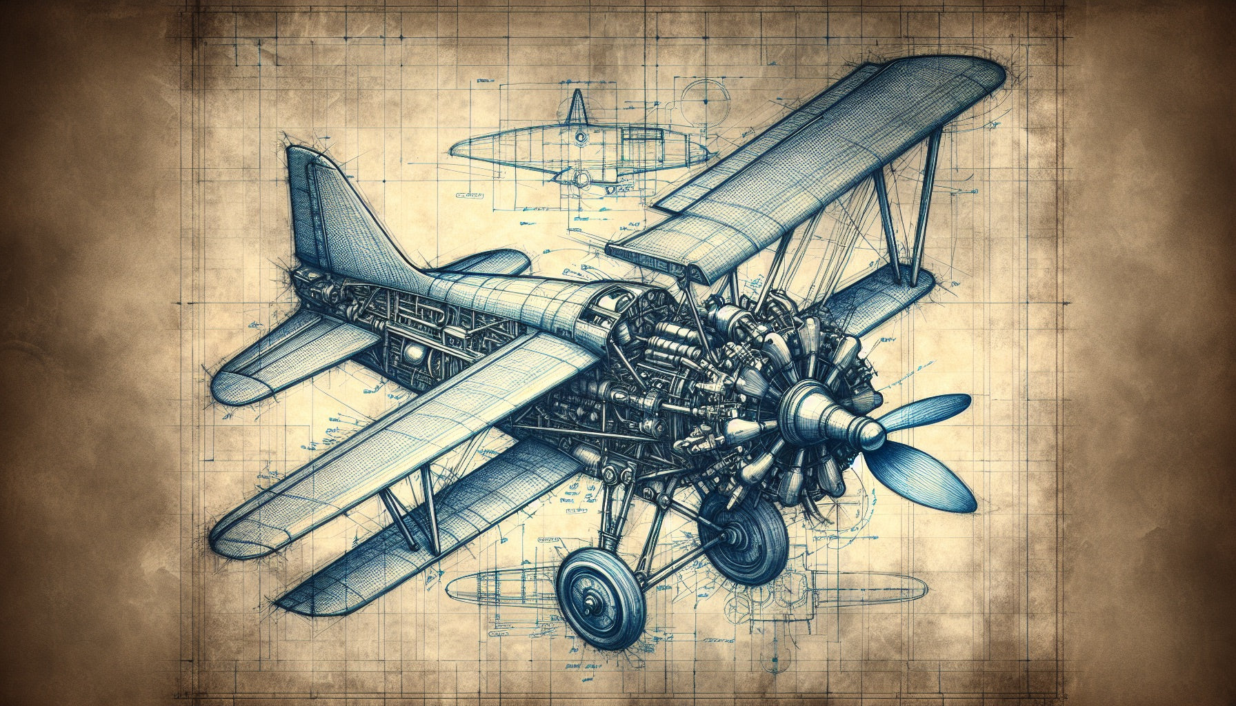 Ce papier peint avion vintage met en valeur l'artisanat d'ingénierie complexe de l'aviation classique à travers un plan technique détaillé. Représenté dans des tons bleus sophistiqués sur un fond de parchemin vieilli, le design présente un biplan méticuleusement détaillé avec des vues en coupe révélant la mécanique complexe de son moteur. Le papier peint plan d'aviation combine des dessins techniques précis avec un hachurage artistique, créant un mélange magistral de précision mécanique et d'esthétique vintage.