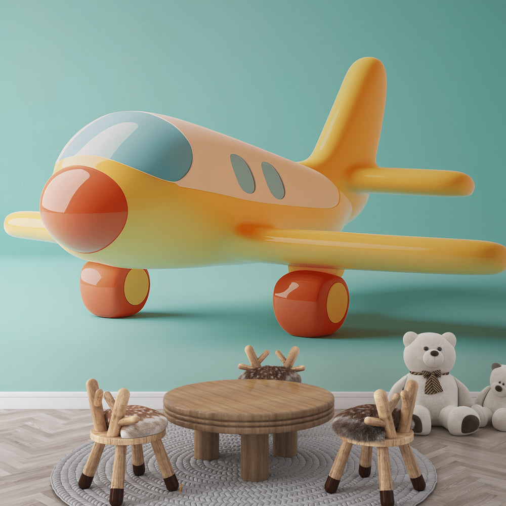 Papier Peint Mural Avion | Design Jouet 3D en Couleurs Pastel