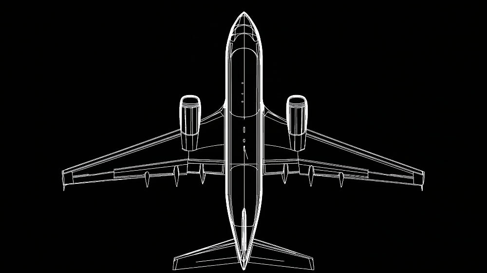 Cette fresque murale d'avion saisissante présente un design sophistiqué en art linéaire rendu en blanc net sur un fond noir profond. Le dessin architectural détaillé capture un avion vu de dessus avec une précision technique rigoureuse, mettant en avant des lignes géométriques élégantes qui définissent les ailes, les moteurs et le fuselage. Le papier peint aviation minimaliste démontre une maîtrise remarquable du détail tout en conservant une esthétique propre et contemporaine.