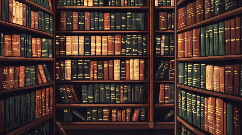 Ce papier peint mural de bibliothèque vintage capture chaque tranche de livre et étagère.