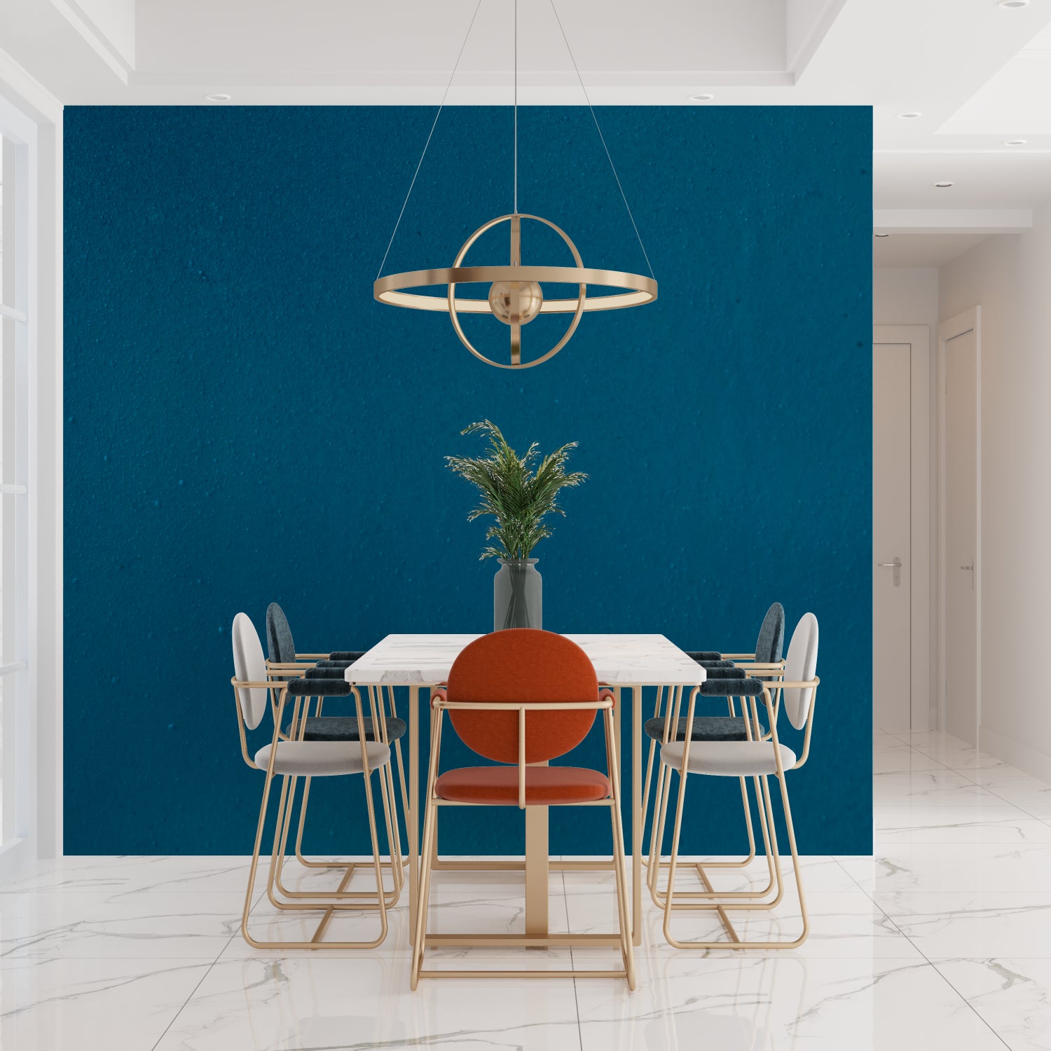 Transformez votre intérieur avec ce papier peint bleu profond qui s'adapte facilement à divers styles de décoration. Qu'il soit associé à un mobilier blanc éclatant, des accents métalliques chauds ou des éléments naturels, ce revêtement mural sarcelle établit une base distinguée pour créer des espaces qui équilibrent élégance professionnelle et confort résidentiel. Le design polyvalent fonctionne harmonieusement dans les salles à manger, les salons et les environnements professionnels.
