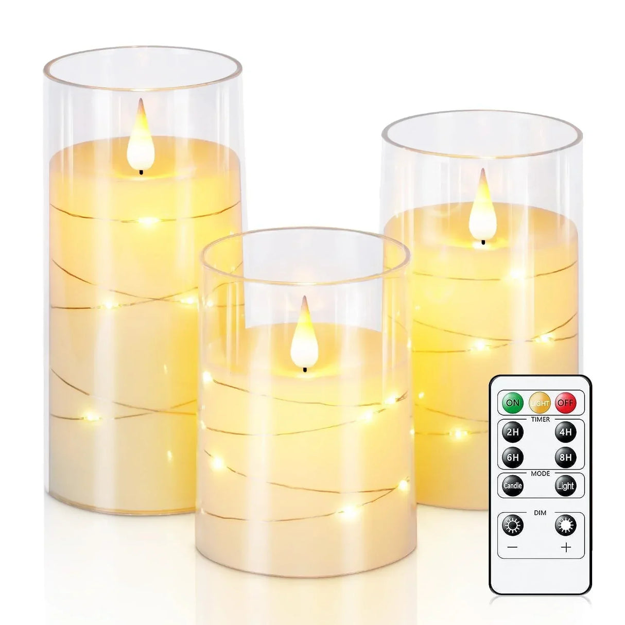 Bougies LED sans flamme | Ensemble de cylindres en verre avec guirlande lumineuse