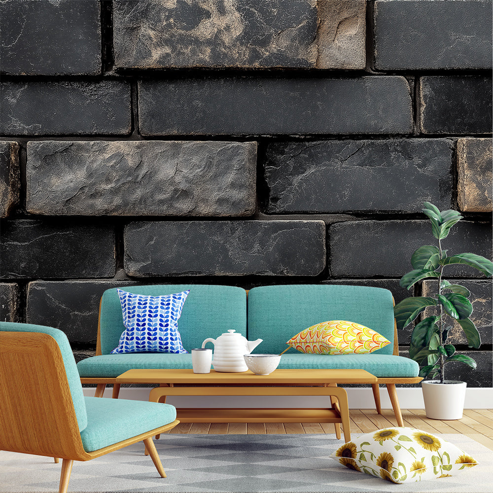 Papier Peint Mural Brique | Texture Pierre Noire Industrielle
