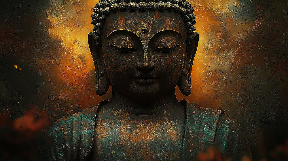 Papier Peint Mural Bouddha | Design Mystique Bronze et Orange