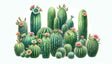 Ce papier peint cactus du désert présente une magnifique gamme de cactus vibrants de différentes hauteurs et formes, créant une composition de jardin naturaliste. L'illustration botanique méticuleuse met en avant des succulentes d'un vert émeraude riche et de tons sauge ornées de délicates fleurs roses, corail et turquoise. Chaque cactus en fleurs est rendu avec un détail exceptionnel, des épines subtiles à la texture douce et duveteuse des plantes sur un fond clair et serein.