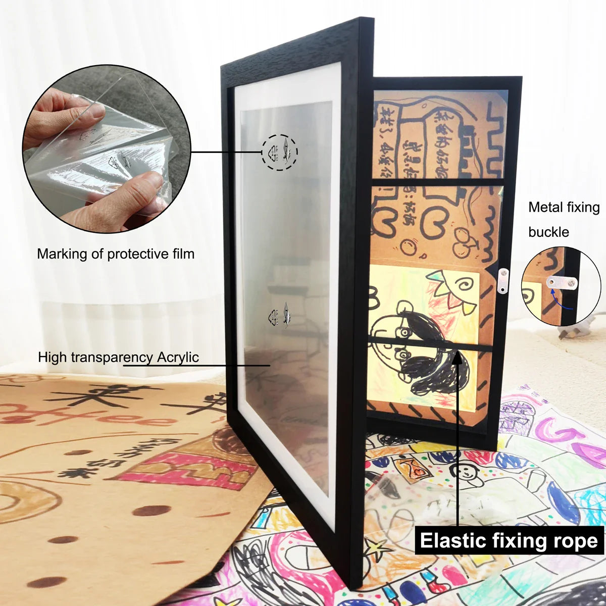 Cadre d'exposition pour œuvres d'enfants | Cadre en bois magnétique avec verre