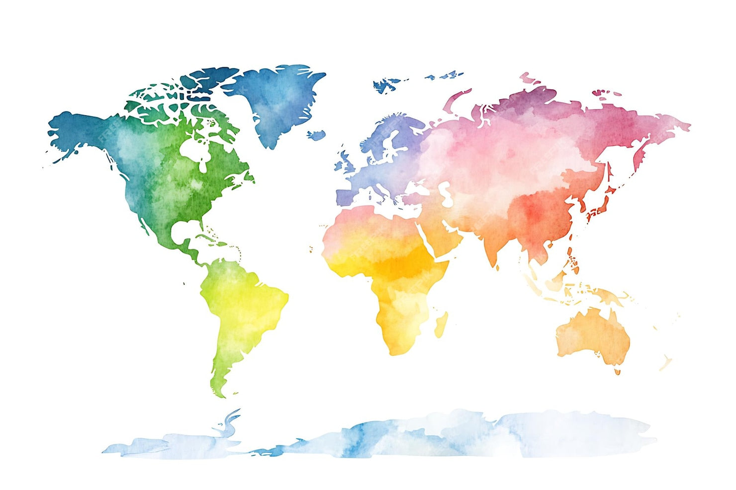 Papier Peint Mural Carte du Monde | Continents Arc-en-ciel Aquarelle