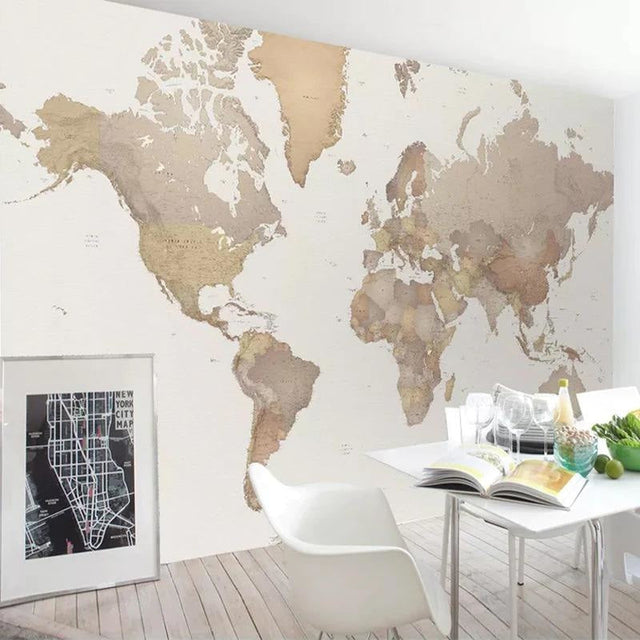 Papier Peint Mural Carte du Monde | Design Moderne Beige et Blanc