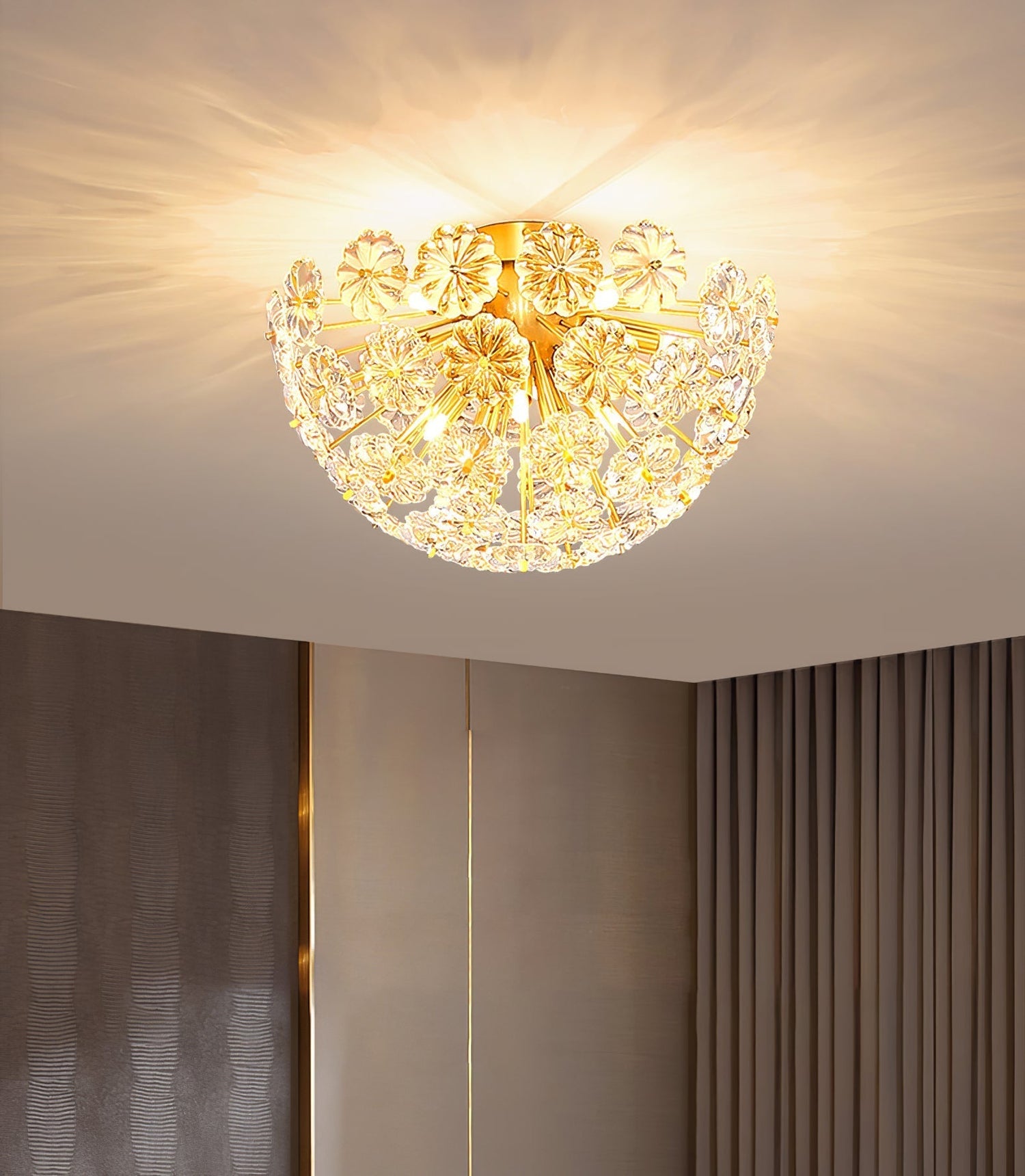 Plafonnier Fleur de Cristal | Design Floral en Métal Doré