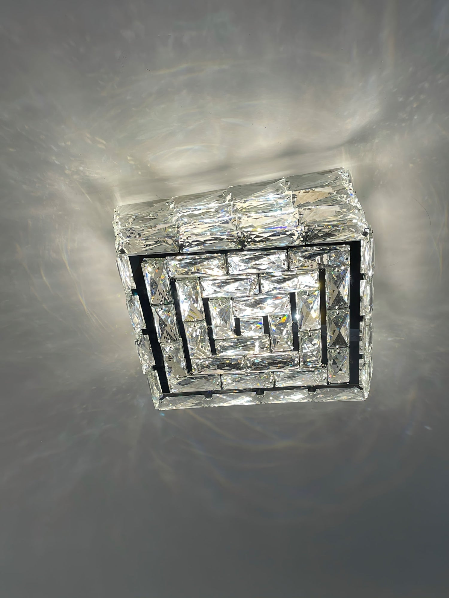 Apportez une élégance moderne à votre intérieur avec ce plafonnier en cristal. L'ensemble du luminaire est fabriqué en cristal K9 de haute qualité et en acier inoxydable, créant un look luxueux. Le design contemporain rend cette lampe distinctive, que la lumière soit allumée ou éteinte. Avec son jeu de lumière enchanteur, cette lampe ajoute une touche de raffinement à toute pièce.