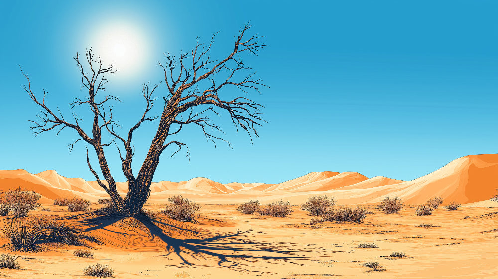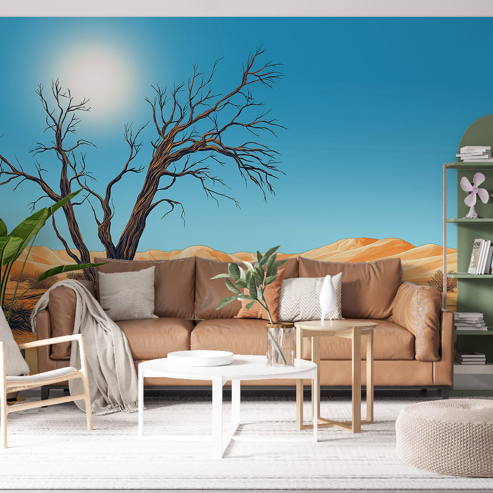 Papier Peint Mural Désert | Arbre Minimaliste Sous Ciel Bleu