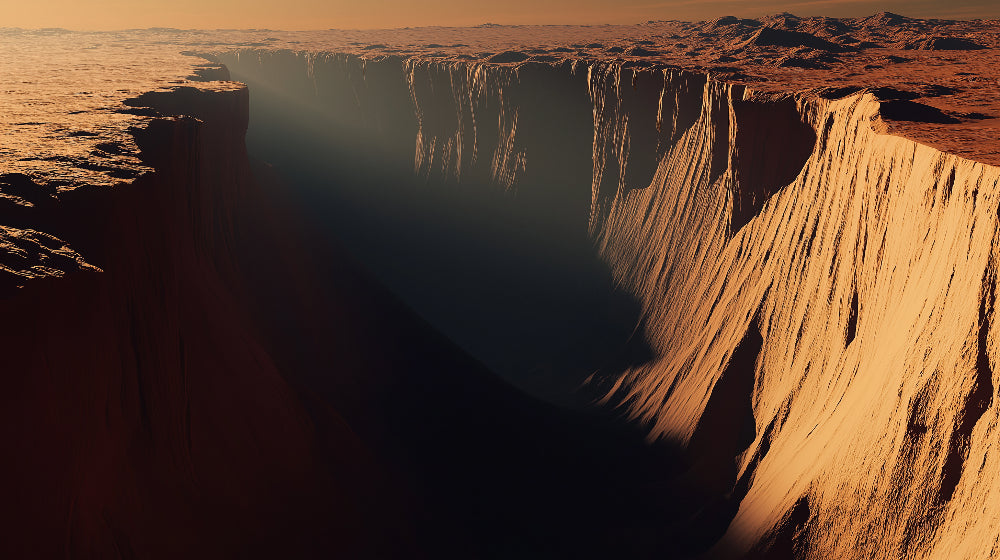Ce papier peint canyon désert capture la majesté brute de la grande architecture de la nature. Des falaises dramatiques s'élèvent des profondeurs ombragées, leurs couches stratifiées illuminées par la lumière de l'heure dorée. Les formations rocheuses teintées de terre cuite créent un jeu fascinant de lumière et d'ombre, tandis que les profondeurs mystérieuses du canyon ajoutent un élément d'intrigue à ce papier peint mural paysage.