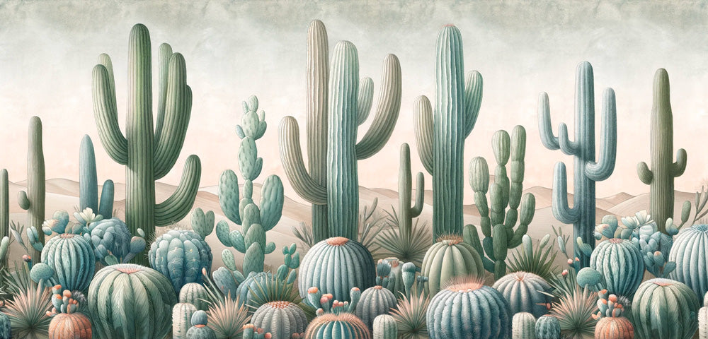 Papier Peint Mural Désert | Paysage de Cactus Vert Sauge