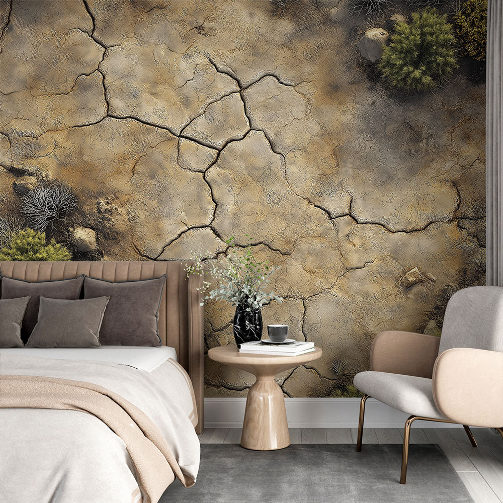 Papier Peint Mural Désert | Terre Craquelée Avec Plantes Indigènes