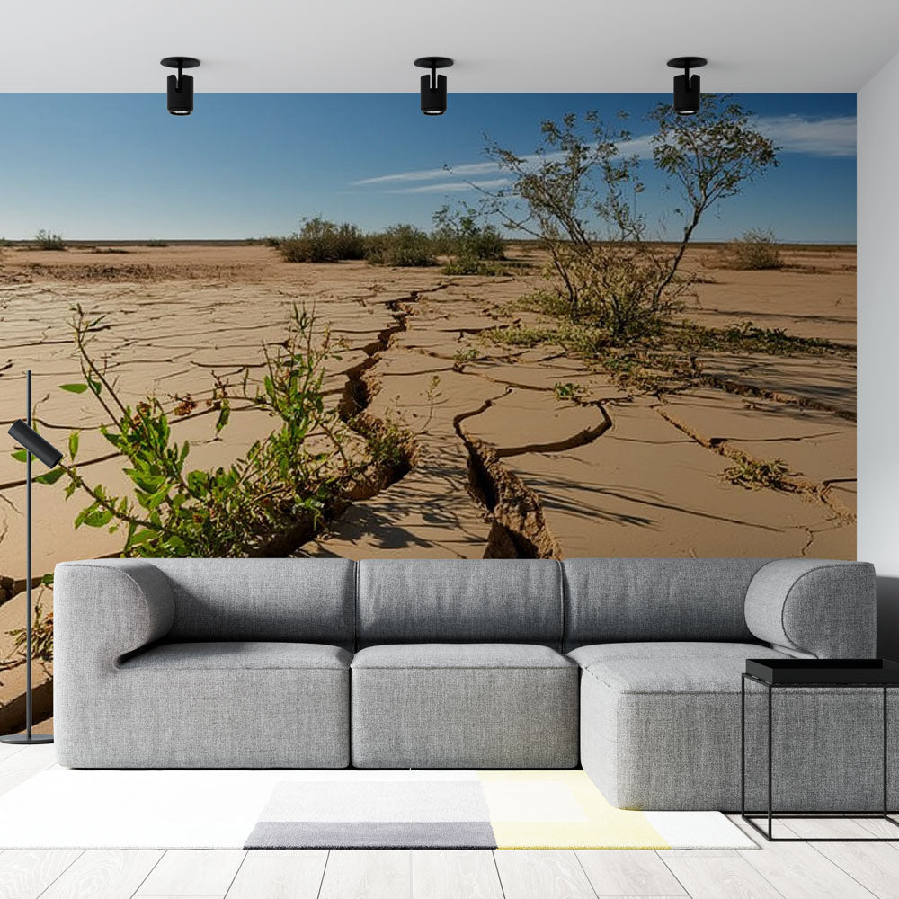 Papier Peint Mural Désert | Terre Craquelée et Végétation Sauvage