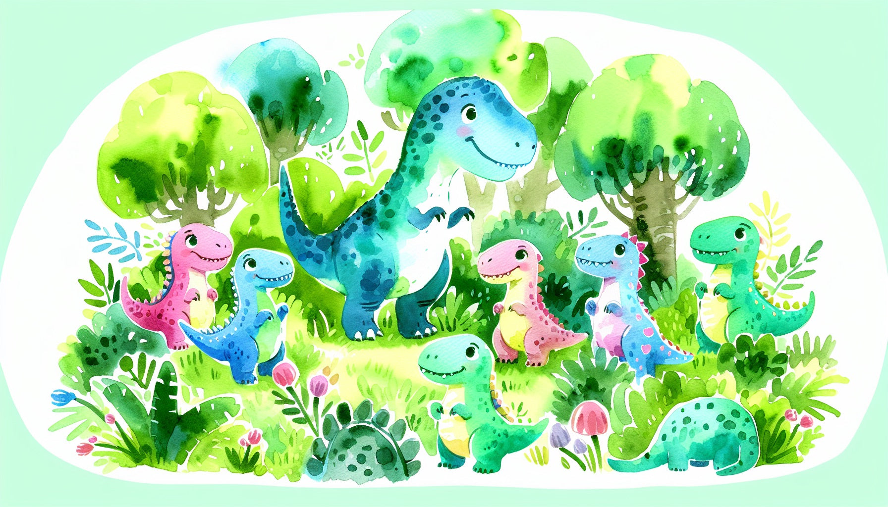 Papier Peint Mural Dinosaure | Dinos Bébés Aquarelle dans la Forêt