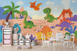 Papier Peint Mural Dinosaure | Scène d'Aventure Préhistorique Dessin Animé