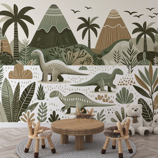 Des couleurs douces se mêlent au style de votre maison tandis que le design mural préhistorique fascine les jeunes esprits.