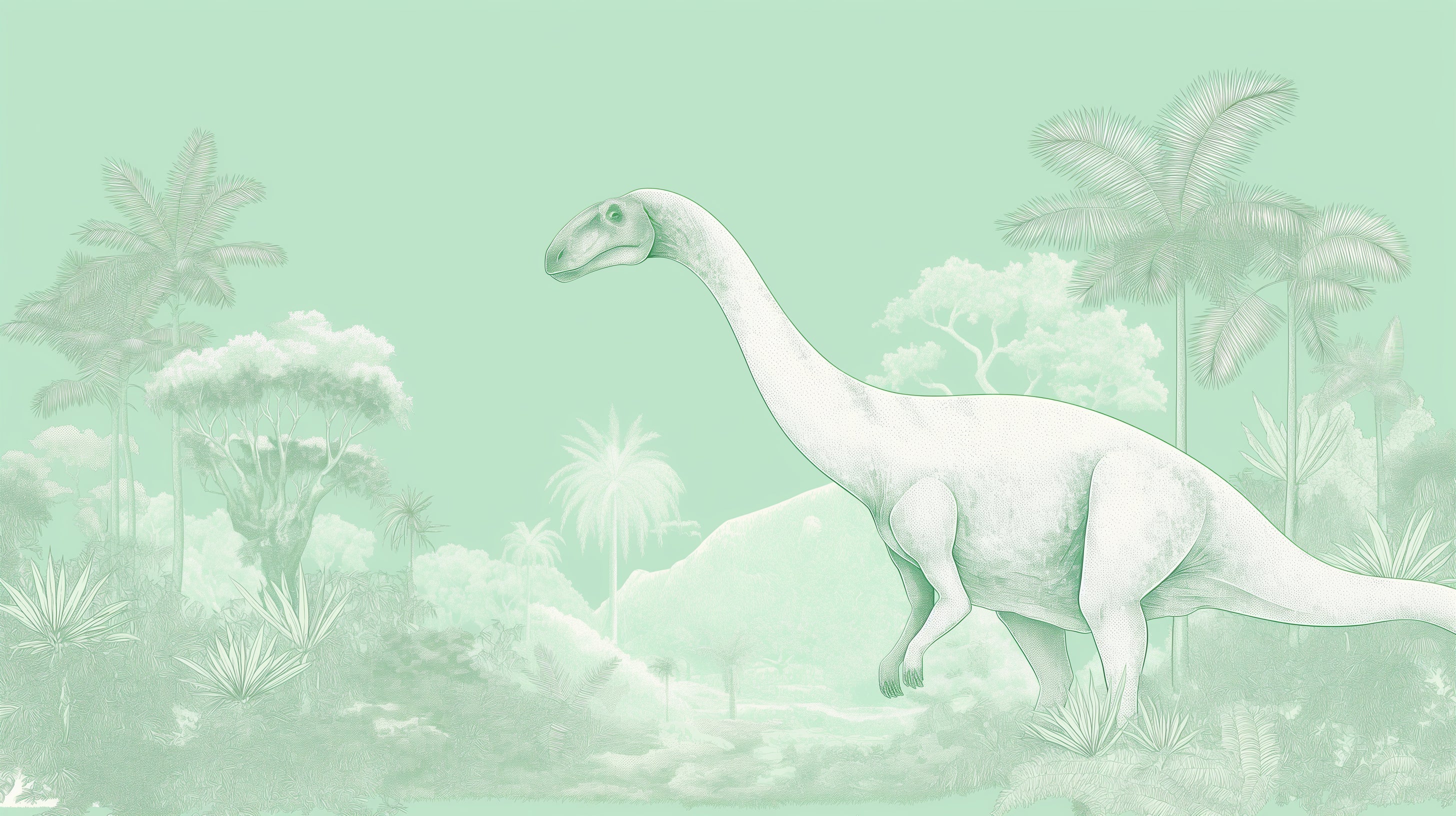Papier Peint Mural Dinosaure | Scène Jurassique Vert Menthe