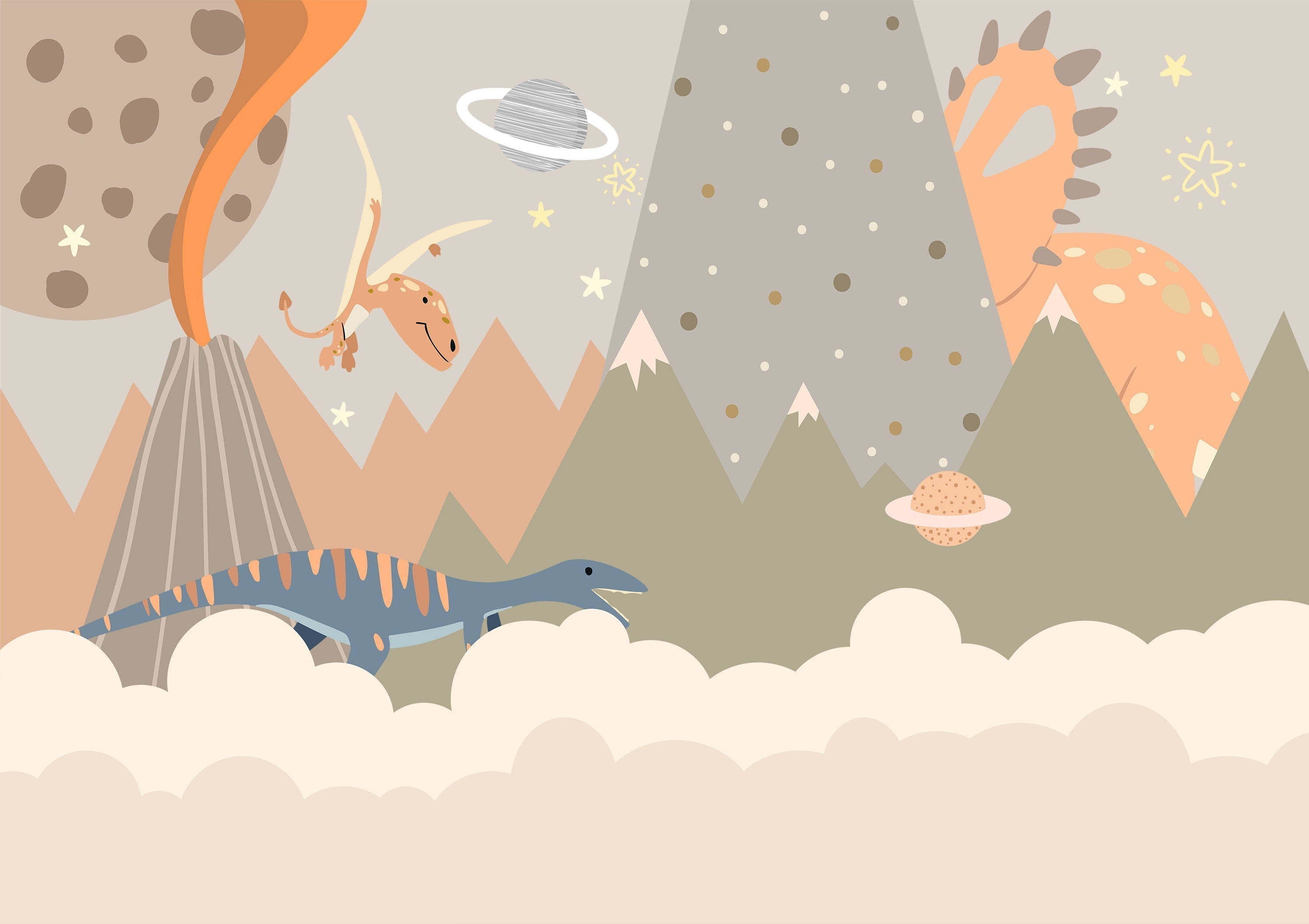 Papier Peint Mural Dinosaure | Aventure en Montagne avec Thème Spatial