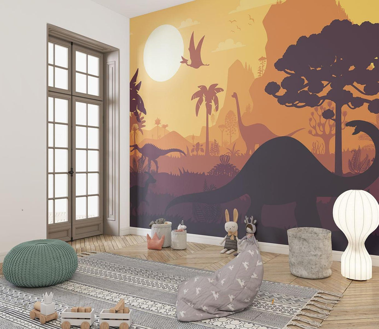 Transformez n'importe quel espace en un monde préhistorique aventureux avec ce papier peint mural jurassique. Le décor dramatique et le design à thème dinosaure en font un choix idéal pour les chambres d'enfants, les salles de jeux ou tout espace où l'imagination doit s'épanouir. Le mélange harmonieux de la nature et des éléments préhistoriques crée une atmosphère qui suscite la curiosité tout en maintenant une esthétique sophistiquée qui plaît à tous les âges.